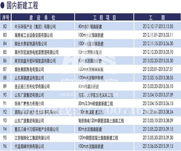 宏順建設(shè)工程有限公司是國(guó)家批準(zhǔn)成立的專業(yè)高空作業(yè)企業(yè):承攬過(guò)(國(guó)內(nèi).國(guó)外)煙囪新建、煙囪防腐、磚煙囪新建、煙囪改造、煙囪維修、煙囪脫硫防腐、煙囪拆除加高、煙囪滑膜等高空作業(yè)工程。具有“不搭腳手架 、 不需要停產(chǎn)”施工特點(diǎn)。